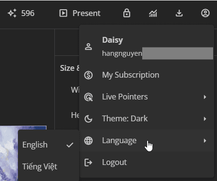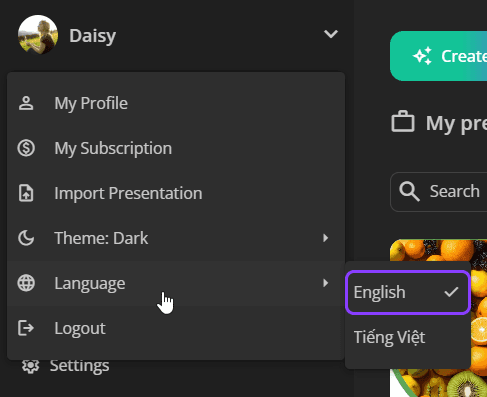 After logging in to your uPresenter account, if you want to switch to another language, perform the following steps: