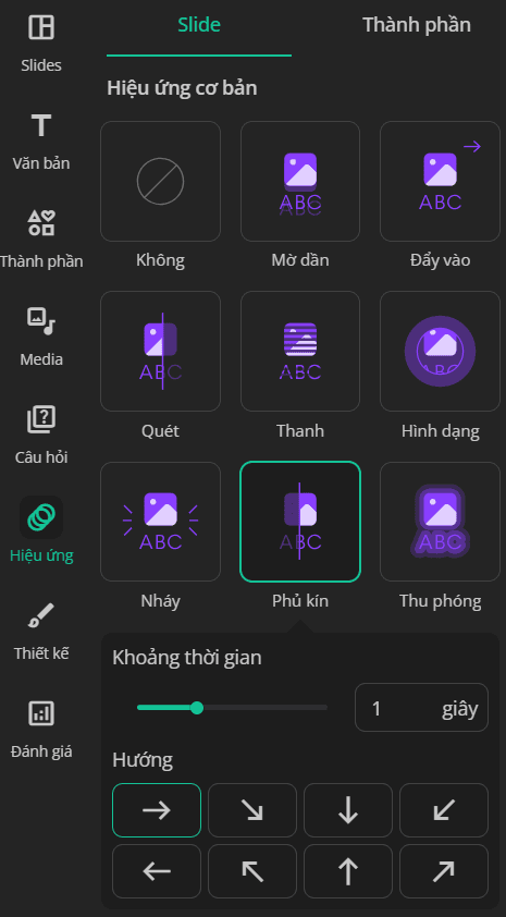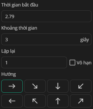 Điều chỉnh thời lượng và hướng của hiệu ứng.